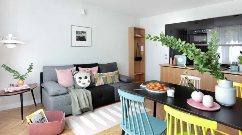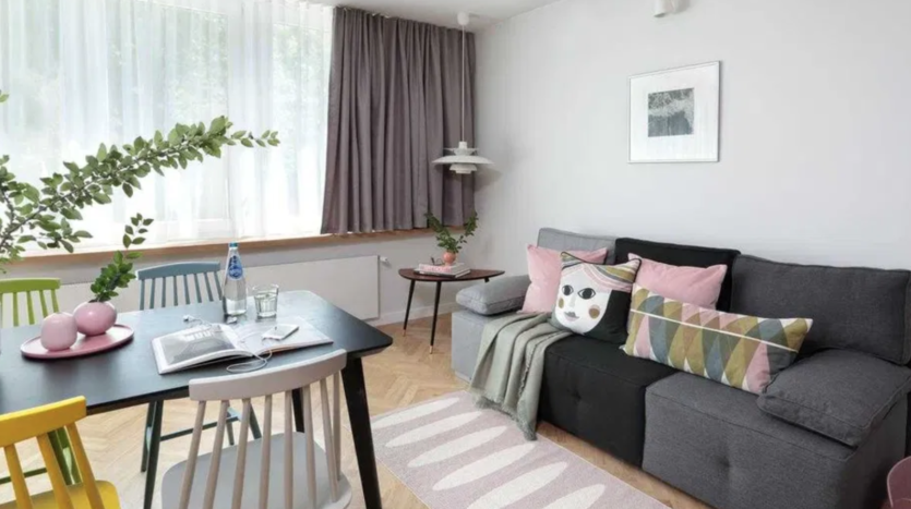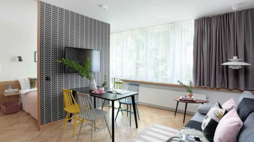 A beautiful, modern and very spacious studio apartment with a perfectly separated sleeping area, located on Corazziego Street in the very heart of Warsaw.