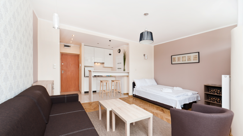 Price is 3800 PLN per month for a contract of 12 months. It includes the utilities and the bills (Water, heating, Internet, electricity)