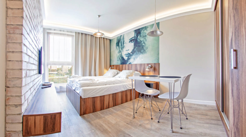 The property is on Spichrzów Island, close to Gdansk’s Old Town, providing easy access to numerous landmarks, museums, restaurants, and cafes. The area features walking trails and green spaces perfect for relaxing. Gdansk is a city rich in history and cultural attractions worth exploring during your stay.