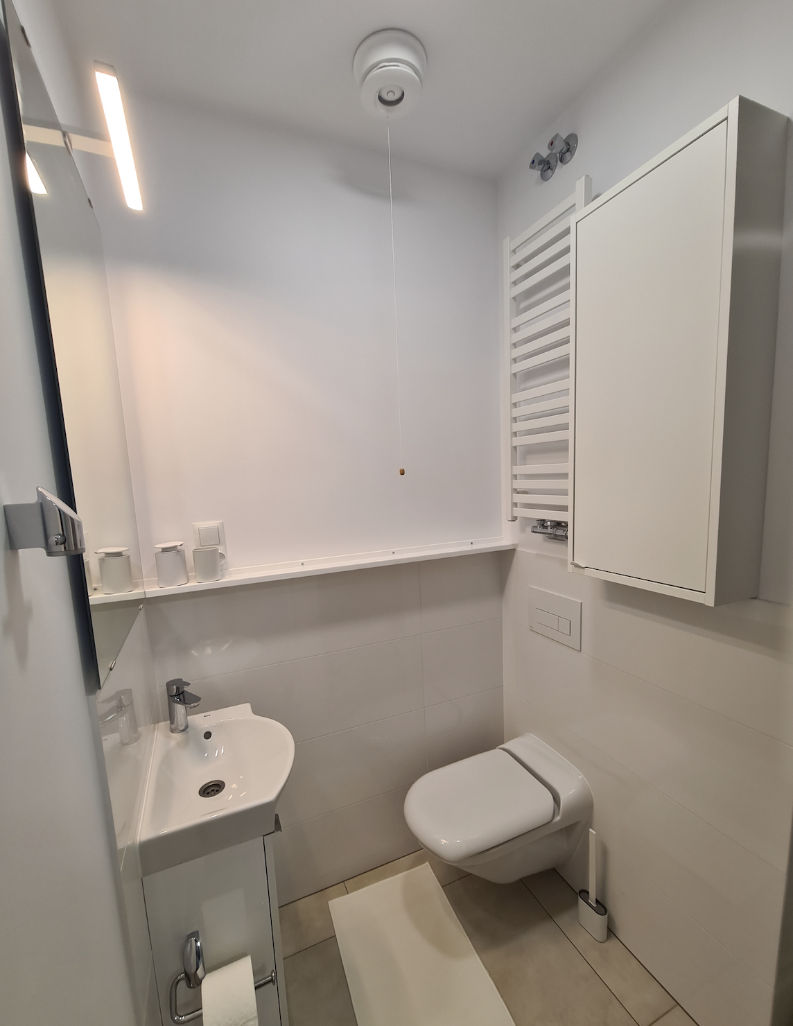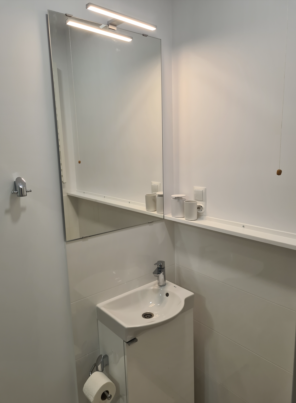 In the apartment, there is also a separate utility room (shared with four other studios) equipped with a washbasin, a Bosch washing machine and a Bosch clothes dryer, as well as cleaning equipment, a vacuum cleaner, an iron, and an ironing board.