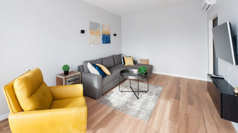 Price is 5700 PLN per month for a contract of 12 months. It includes the utilities and the bills (Water, heating, Internet, electricity)